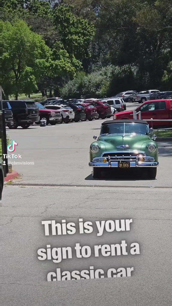 Rent this vintage 1952 Chevy Deluxe convertible for your next photoshoot! This classic car adds a touch of nostalgia and retro charm to any shoot. Don't miss out on the opportunity to capture timeless photos with this unique prop. Limited availability, book now!